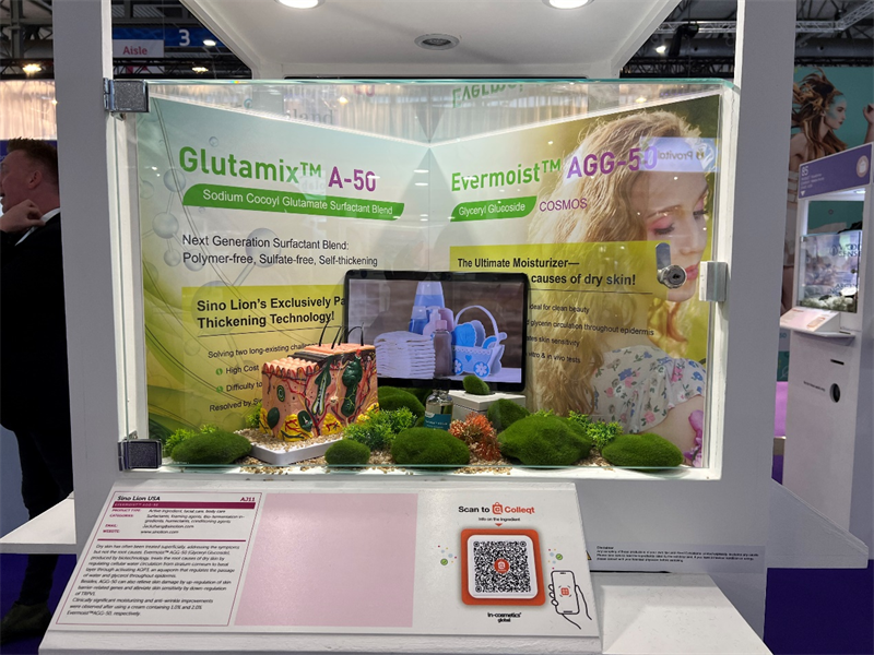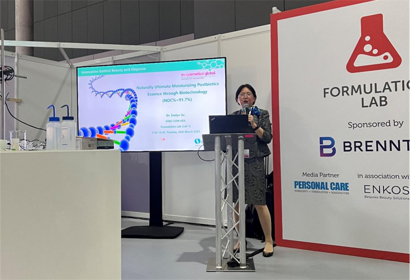 在此次展會中,中獅集團總裁兼首席科學官——蘇桂珍(Evelyn Su)博士帶來了以“終極保濕劑技術——從根本上解決皮膚干燥問題”為主題的分享,深入淺出地講解了終極保濕劑技術的原理、重要性和應用方法,要想從根本上解決皮膚干燥的問題,不能只停留在表皮的最外層“吸水”和“鎖水”的理念上,還需要考慮皮膚“運水”的能力。Evermoist? AGG-50(G)作為中獅的明星產(chǎn)品,正是通過激活水通道來實現(xiàn)水在表皮層的循環(huán)擴散,在賦予皮膚水潤光澤的基礎上,促進屏障功能修復和降低皮膚敏感度。該產(chǎn)品也因其突出的技術優(yōu)勢和有益于消費者的表現(xiàn)入圍全球創(chuàng)新獎活性物的決賽。