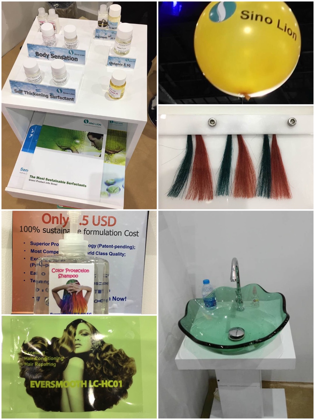 我司通過和泰國代理商PGT的通力合作,在本次展會上對產(chǎn)品的宣傳達到了非常好的效果。PGT為配合我司氨基酸表活和液晶護發(fā)素調(diào)理劑的推廣,特意在展館安排了清洗池,配合推出了固色香波和頭發(fā)模板。